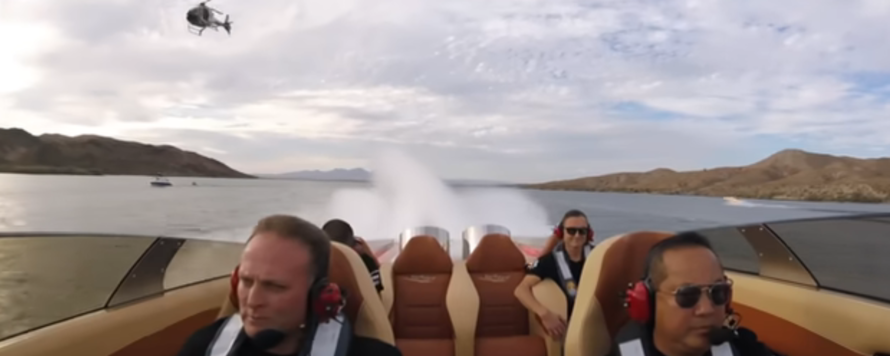 We are talking twin jet turbines producing thousands of horsepower, mated to Mercury Racing #6 drives and Herring props. It shoots flames. It hits 200+ MPH. It is loud, aggressive, and not for the faint of heart.