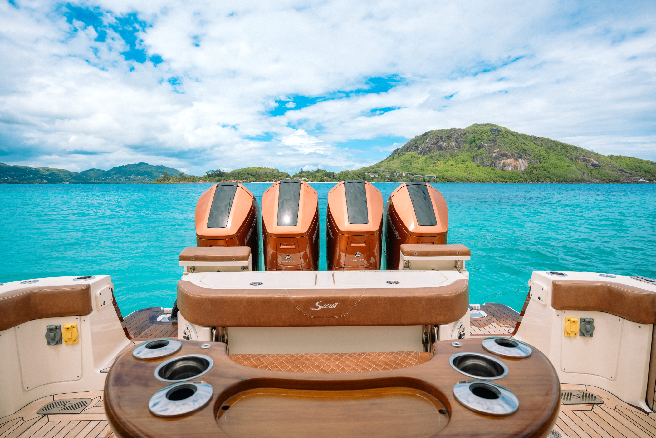 This is not a standard order. This is a bespoke masterpiece and the most option-heavy Scout 530 LXF to ever leave the factory. Finished in custom BMW Metallic Copper with matching engines, this vessel is powered by the massive Quad Mercury 600HP V12 Verados.