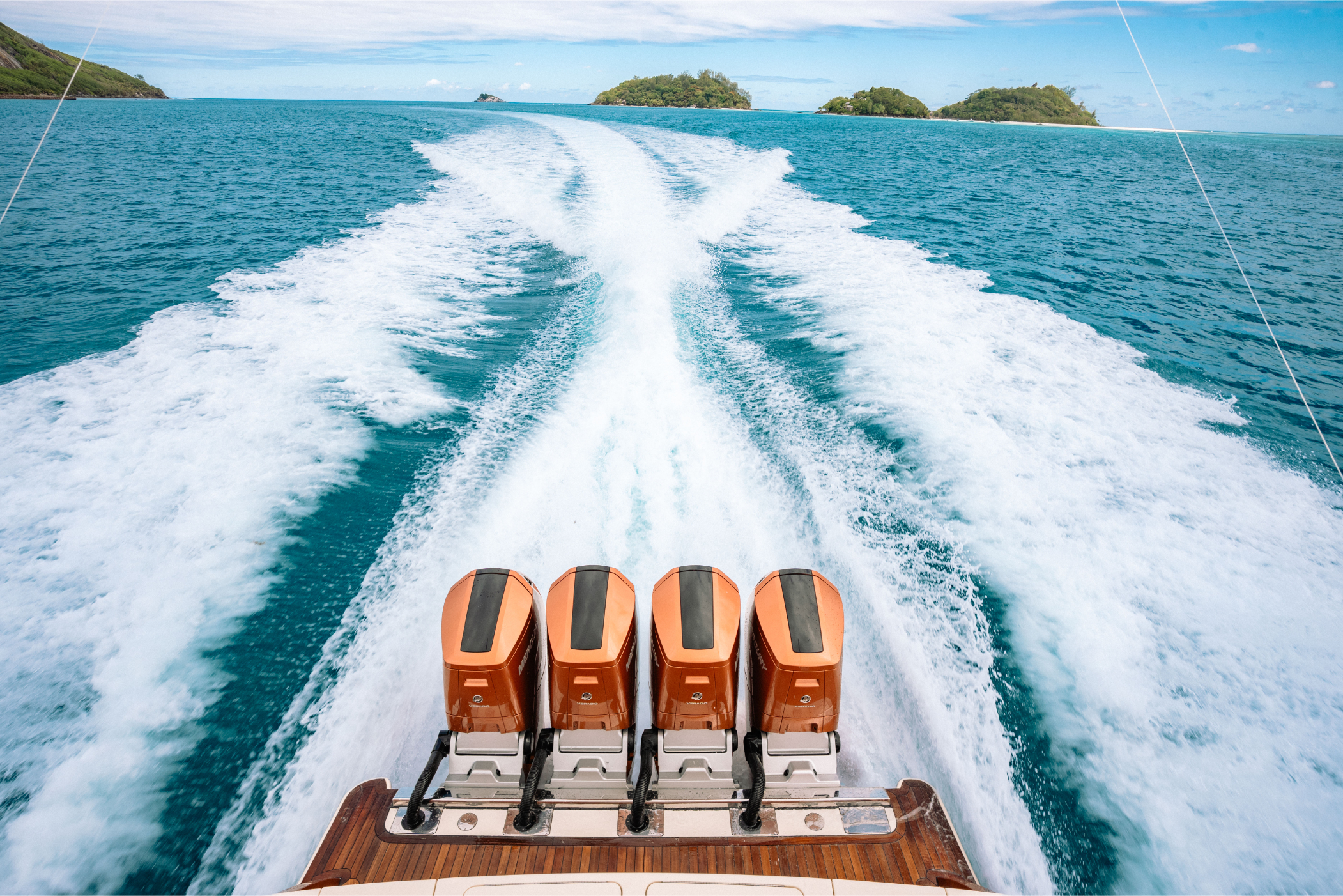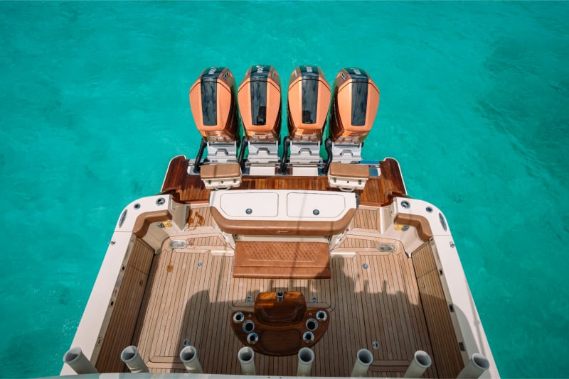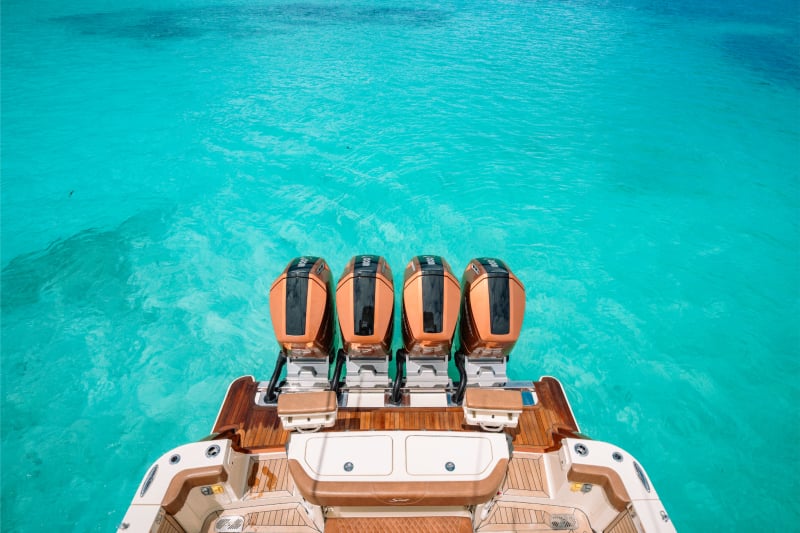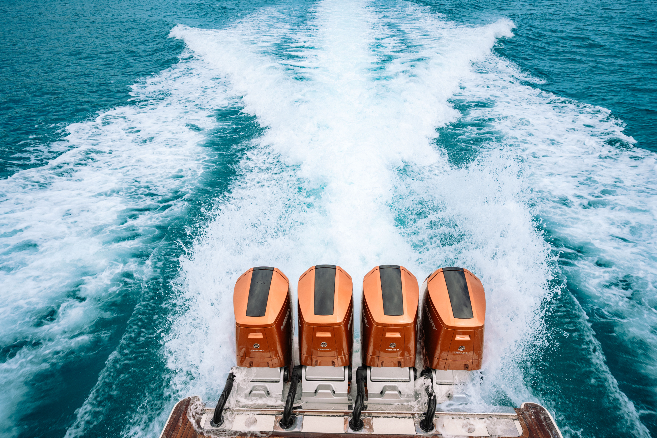 Engines: Quad Mercury 600 Verado V12s (2,400 HP Total) in Custom Paint.