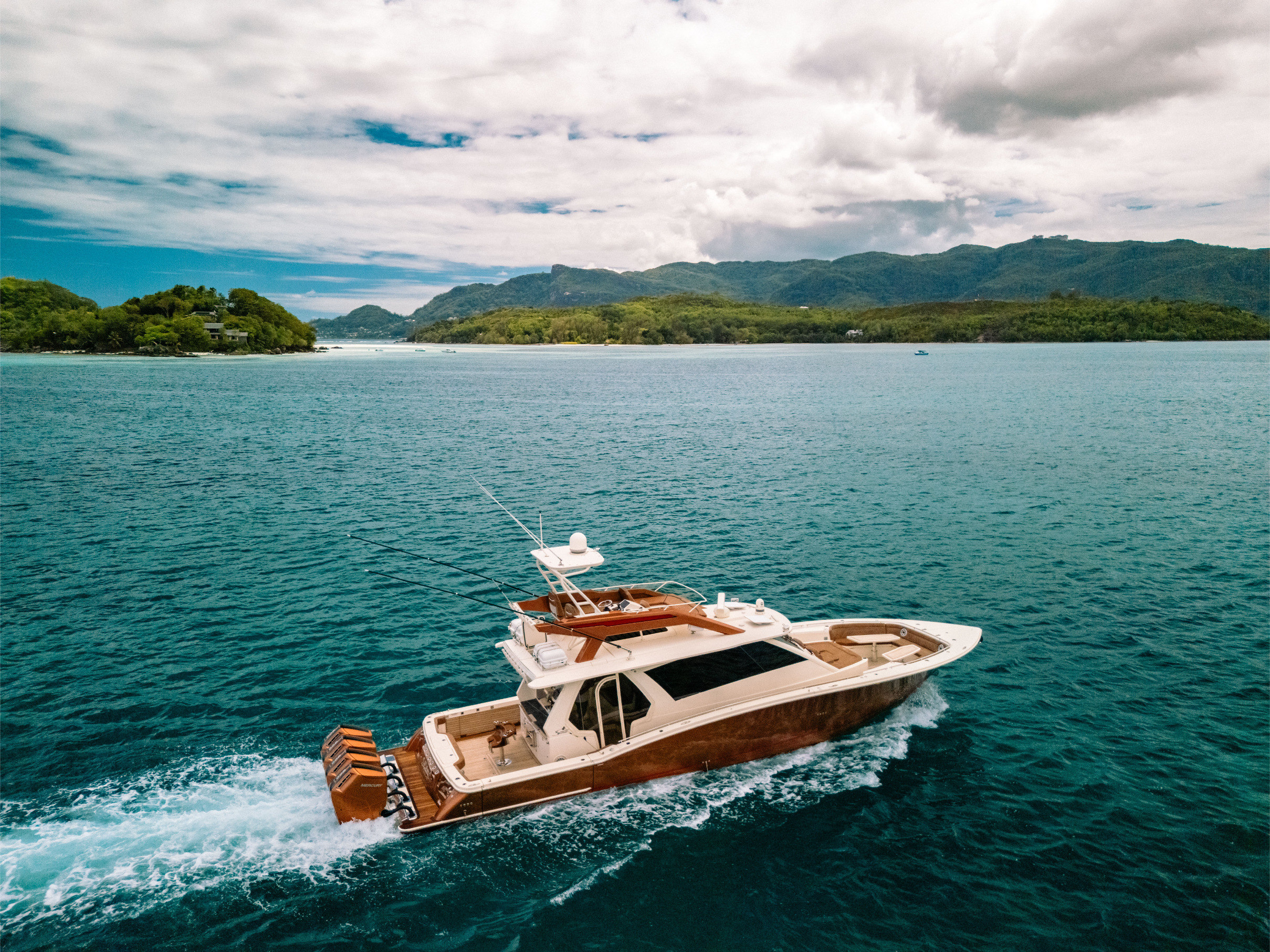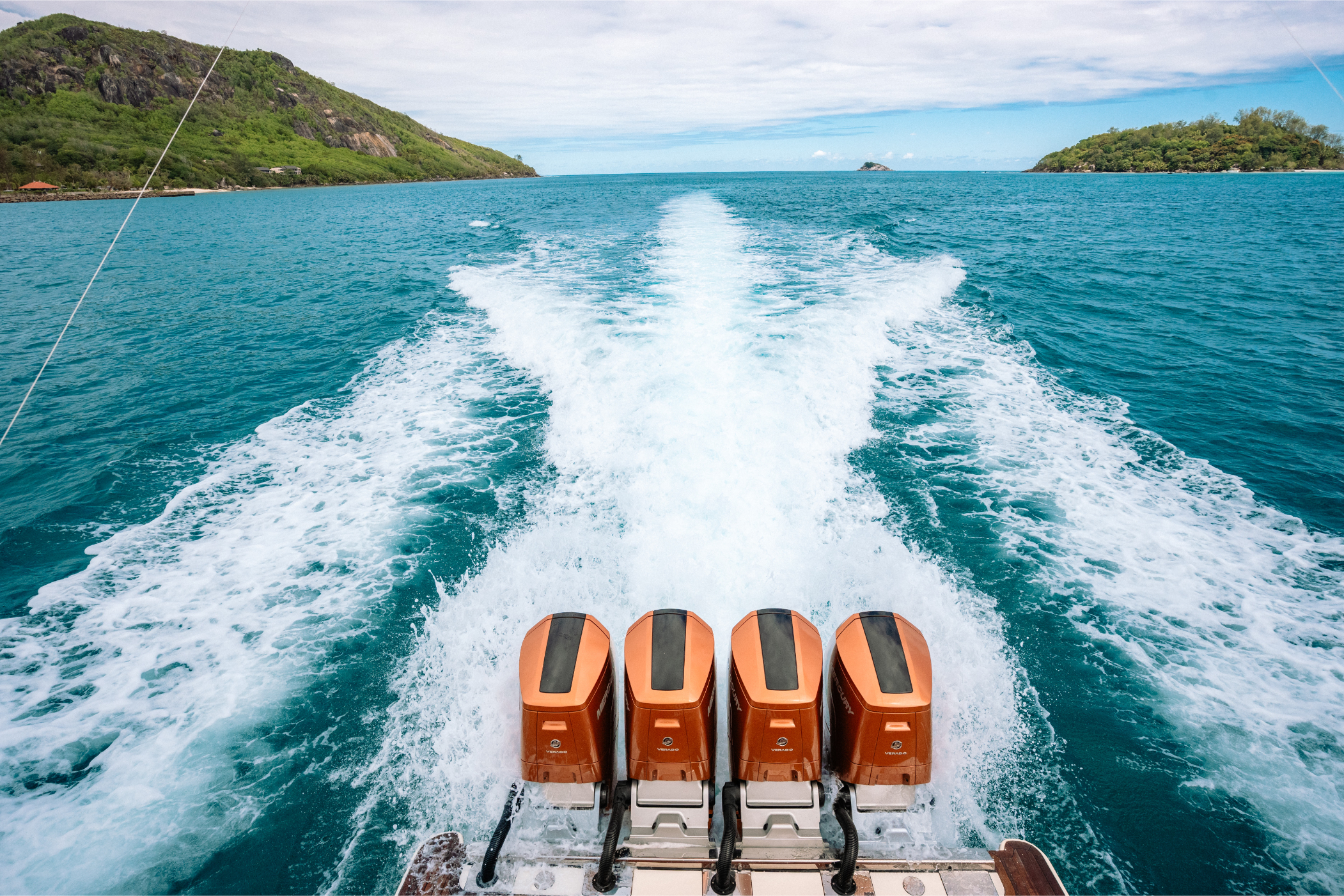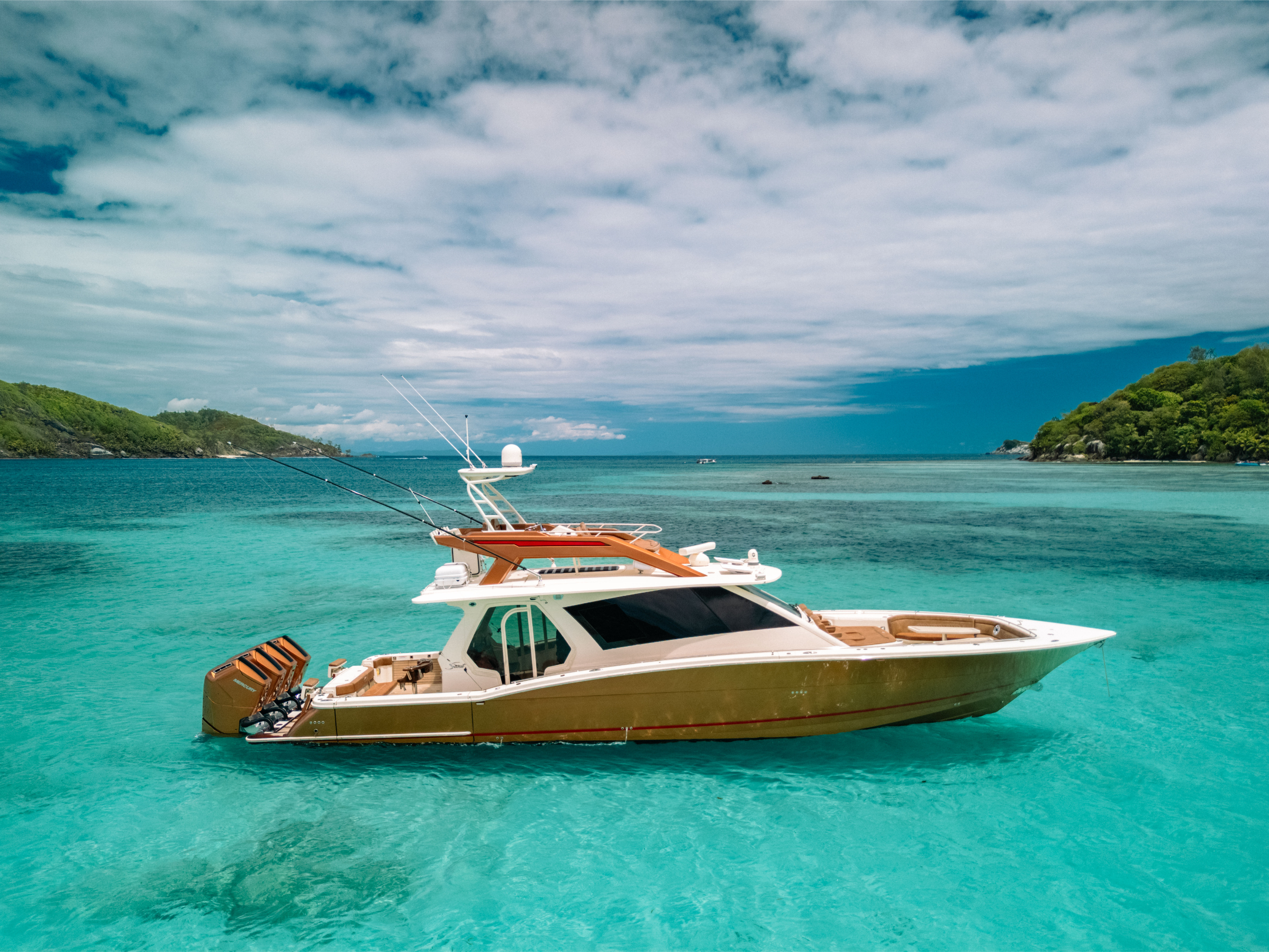 Engines: Quad Mercury 600 Verado V12s (2,400 HP Total) in Custom Paint.