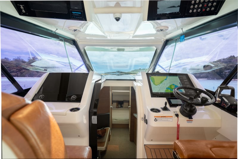 Full Upper Helm Flybridge with Joystick, painted to match the hull.