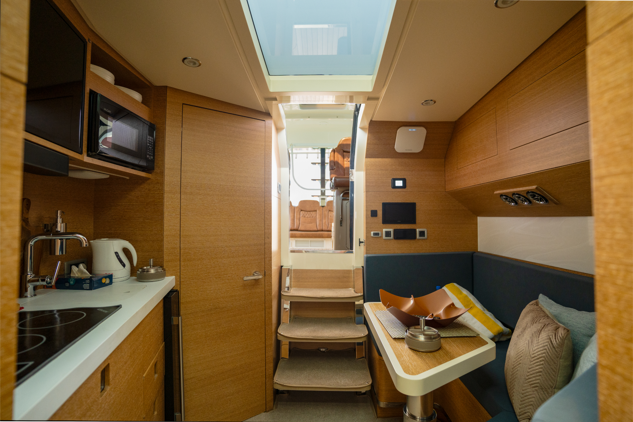 Fully configured for international use with 230V/50HZ shore power, outlets, and CE Certification